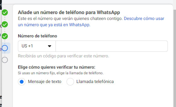8.Ingresa el número de teléfono para WhatsApp. Este es el número que verán las personas cuando chateen contigo.