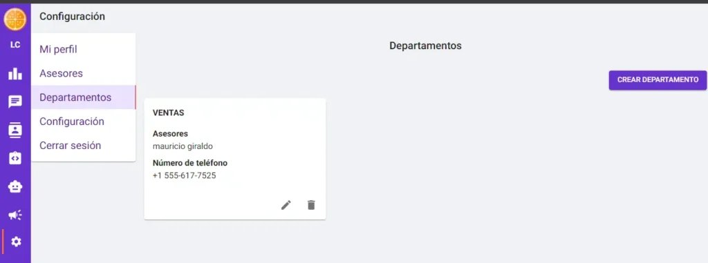 Para crear Departamento en LuloChat, simplemente sigue estos sencillos pasos:
